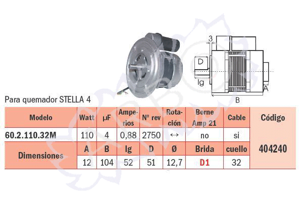 MOTOR QUEMADOR ESPECIFICO RIELLO 3005255 MOTOR 472 SE